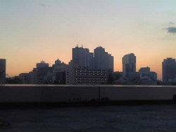 会社から新宿高層ビル街の夕景