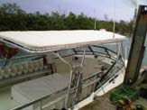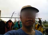 午後はボートに乗ってダイビングスポットまで行くことになりました。雨が降っていましたが出かける頃には晴れ間が見えました。目的の場所についてダイナミックエントリーでエントリー。高さ7メートル位の珊瑚棚の周りを40分くらい潜りました。ビーチに比べると水の透明度も高く、魚の種類も珊瑚の種類も豊富でした。いや、綺麗だった!10メートル以上潜ったので安全停止をしてからエキジットしました。 |