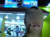 | 昨日とは反対側の方向をぶらぶら歩いているとウェスタンガンクラブという所を見つける。ここでリボルバーとオートを撃つ。リボルバーはオートと違って少し下を撃つと良いらしい。反動が弱いので弱装弾のようです。ベレッタとリボルバーが撃てたので満足です。 | ![]() |